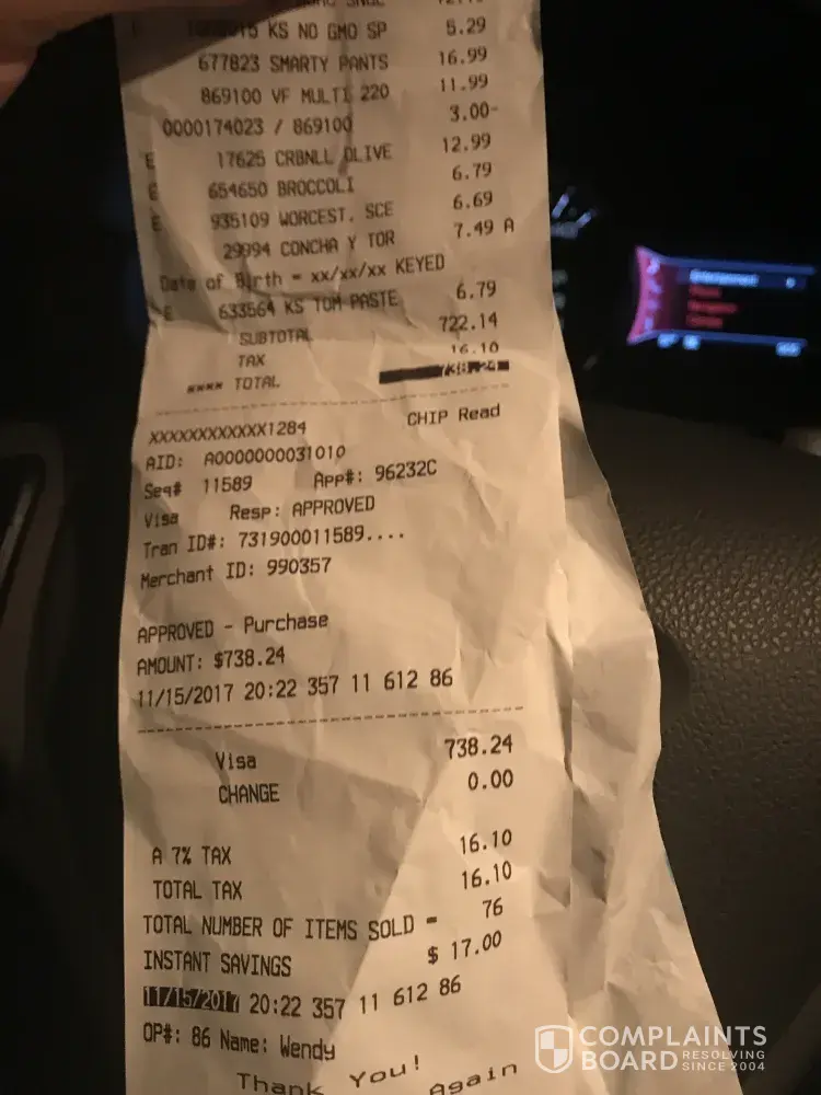 My family I just left Costco in Jacksonville, Florida after spending $734 worth of groceries and other house stuff; the cashier was very rude while checking out.