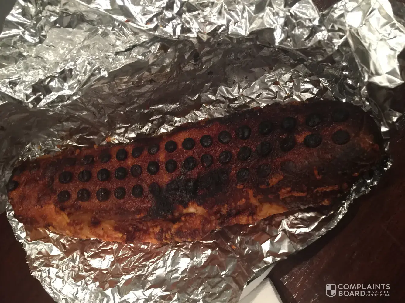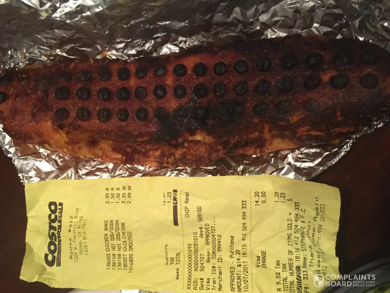 How can such burned food sell to customer? We have been shopping at Costco for years, and this has never happened before. This is not acceptable!