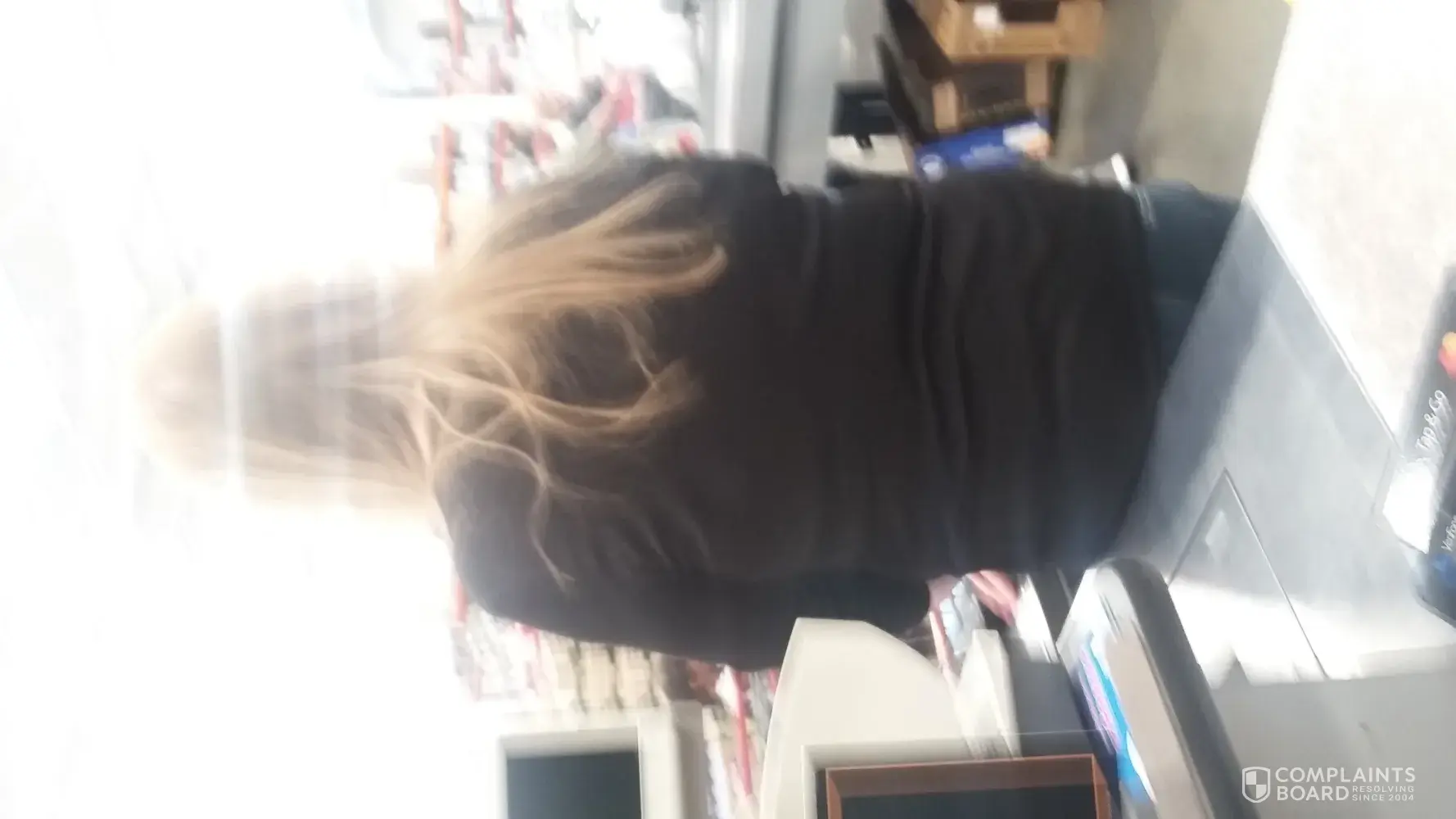 After that she turned her back on us, while my daughter filled up the cart. Please find attached the photo I took of the cashier turning her back on us while we were filling up the cart and waiting for the other lady to bring/replace the item without the price tag.