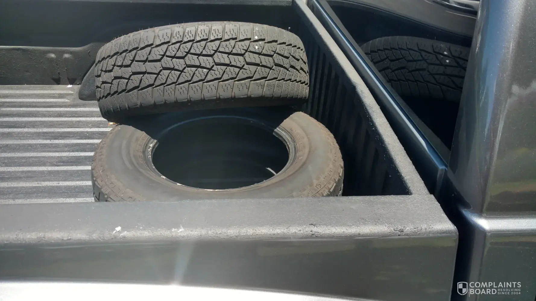 No credit given for unmounted tire/sidewall damage because couldn't see damage. I saw the leak when forced to buy tire at Walmart. About 1/2 life remained. I'm retired Capt. USMC 1st time word doubted by merchant. Tires are Michelin P245/70R17. Do what you think is fair. I'm 79 years old and can ill afford unnecessary expenses. Please advise of your actions.