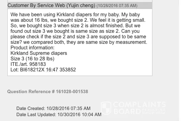 This is customer service from costco. They put the wrong size 2 kirklands diapers in the size 3 box. They don't even bother to check or explain.