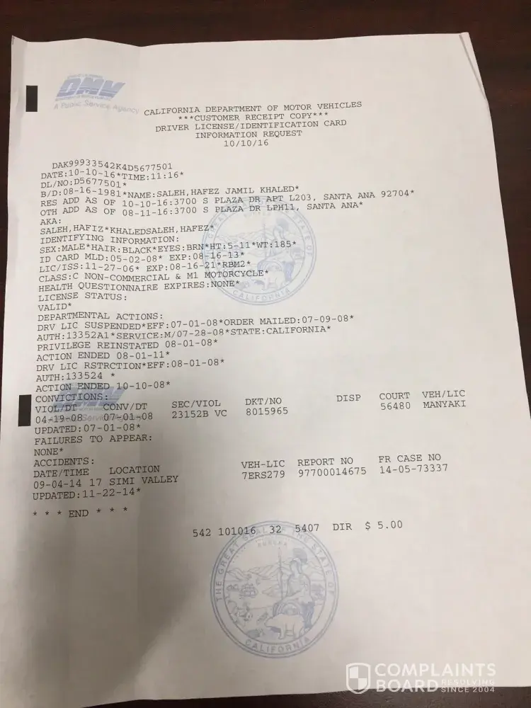 on 10/10/2016 I bravely and patiently spent 4 hours at the DMV to obtain my driving record. which proved that I did not have the accident in 2015.