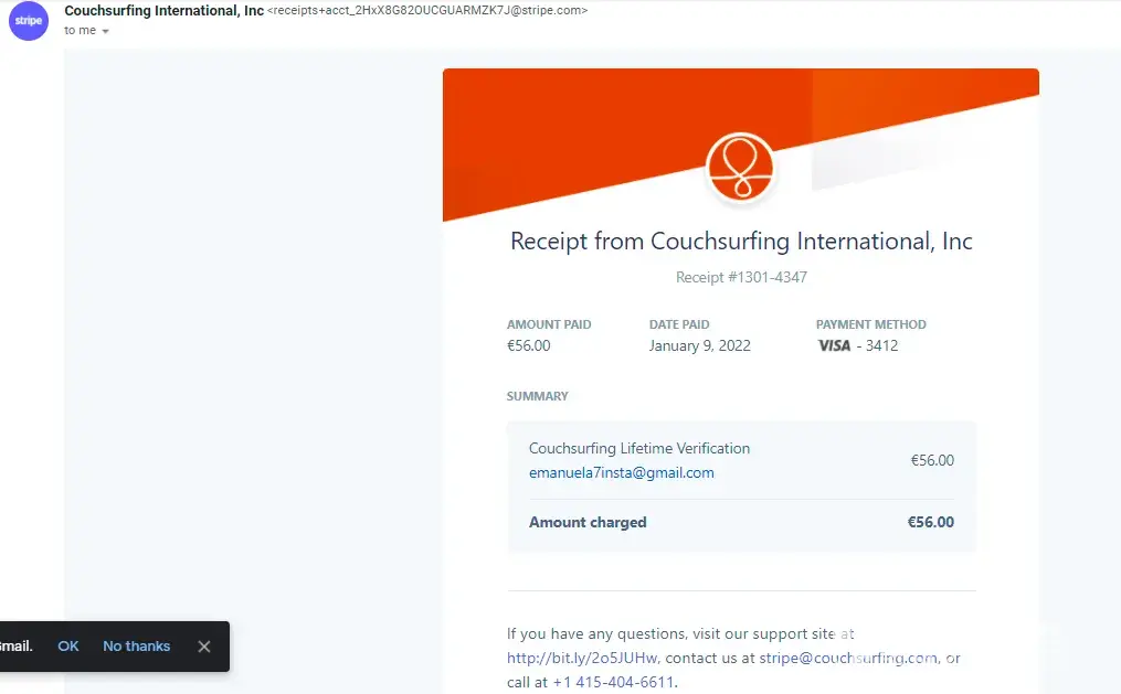 Couchsurfing verification fees