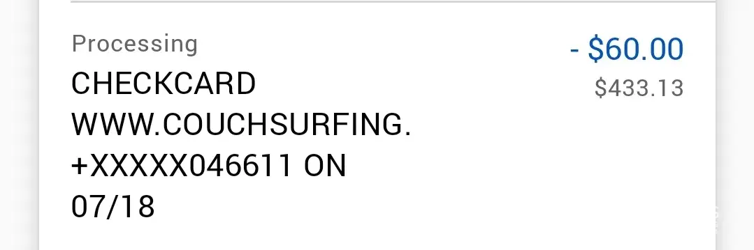 Couchsurfing scammed me through verification. I thought they were just going to confirm my identity and I was not informed I was getting charged $60 until it was too late. Now they are refusing to refund me. They ruthlessly robbed me in the middle of a pandemic! They are criminals!