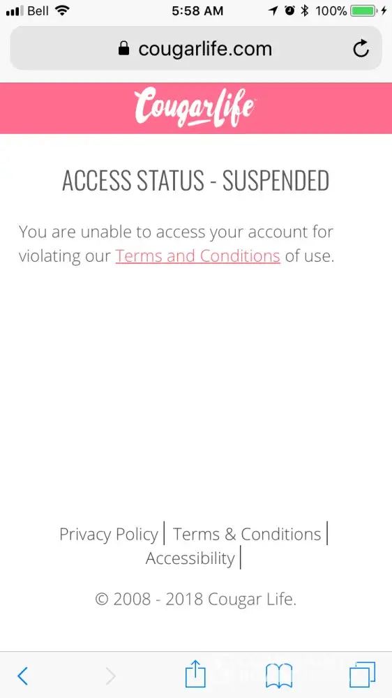 Cougar life customer service, I got insulted by what are your members, and complained and you guys did nothing. He then started following me and stocking me and you still did nothing when I put it all over cougar life that he was stocking me you guys suspended my account while he is still out there doing the same to other females