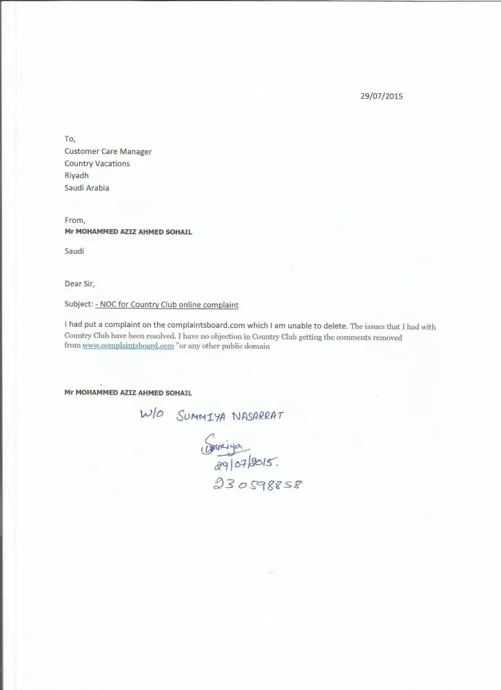 After posting the complaint i have been called by Country Club / Country vacation to discuss regarding to the approval of my refund from Dubai office (they claims that the Country Club / Country Vacationn Saudi Arabia under Dubai office).