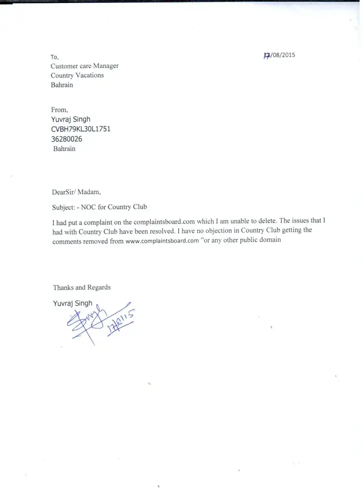 With due respect i am doing my best to help country club / country vacation to resolve my query without any conflict (as everybody can see how much patience i would have showing towards them since 2015...just because i respect my fellow citizens and unfortunately i have been victimized by our fellow citizen only).