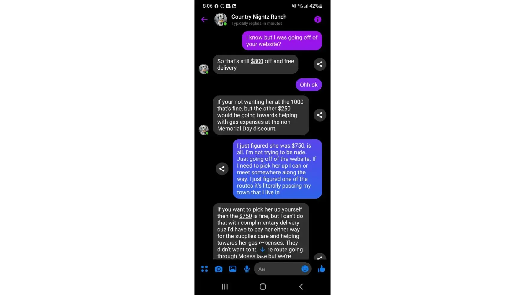 I cannot tag them because now they have me blocked. I will post the context of the conversation, and give the website. Like I said be cautious of doing business with someone that is dishonest or doesn't honor what they advertise!