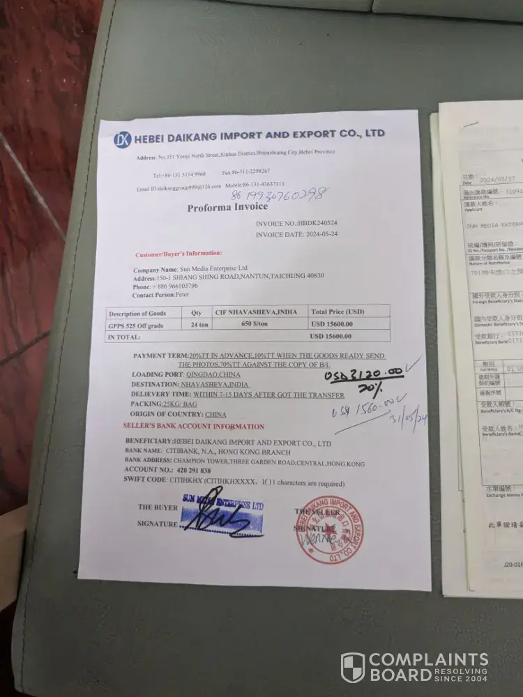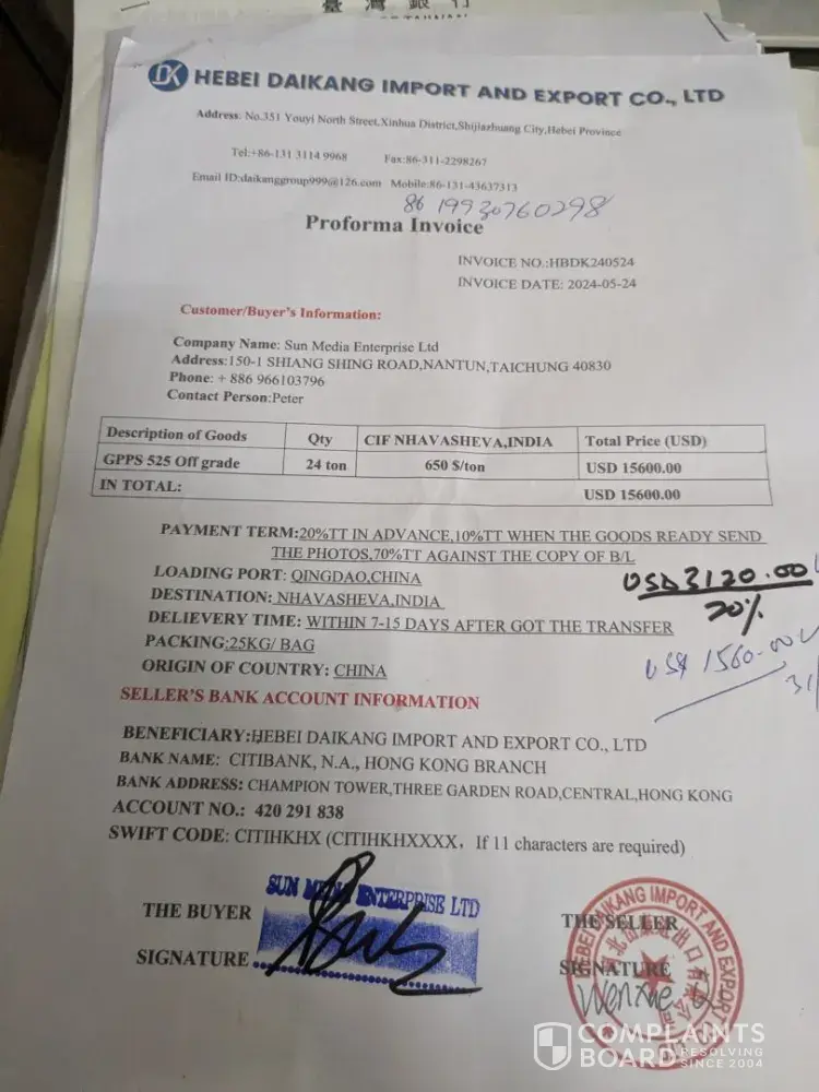 Read full complaint and 1 commentHebei Daikang Import and Export Co Ltd - gpps chemical
