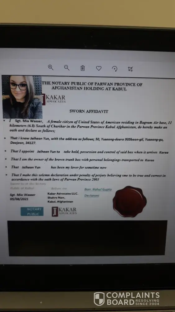 The company requested several fees for delivering package and the sender (Ms. Mia Wasser, picture attached) pretended to US military servicewoman dispatched to Afghanistan. I paid about $200,000 and found its fraud. Mail address of logistic person (name:Buruno Hartley) is [protected]@speedconsignuk.com. and I am still contacting by mail. My mail address is [protected]@gmail.com.