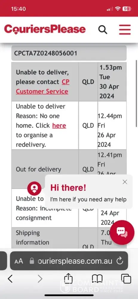 - Couriers Please's complaint resolution process is inadequate and ineffective. The support team lacks customer service skills, training, and resources, resulting in only 0% of 4 complaints being resolved.
