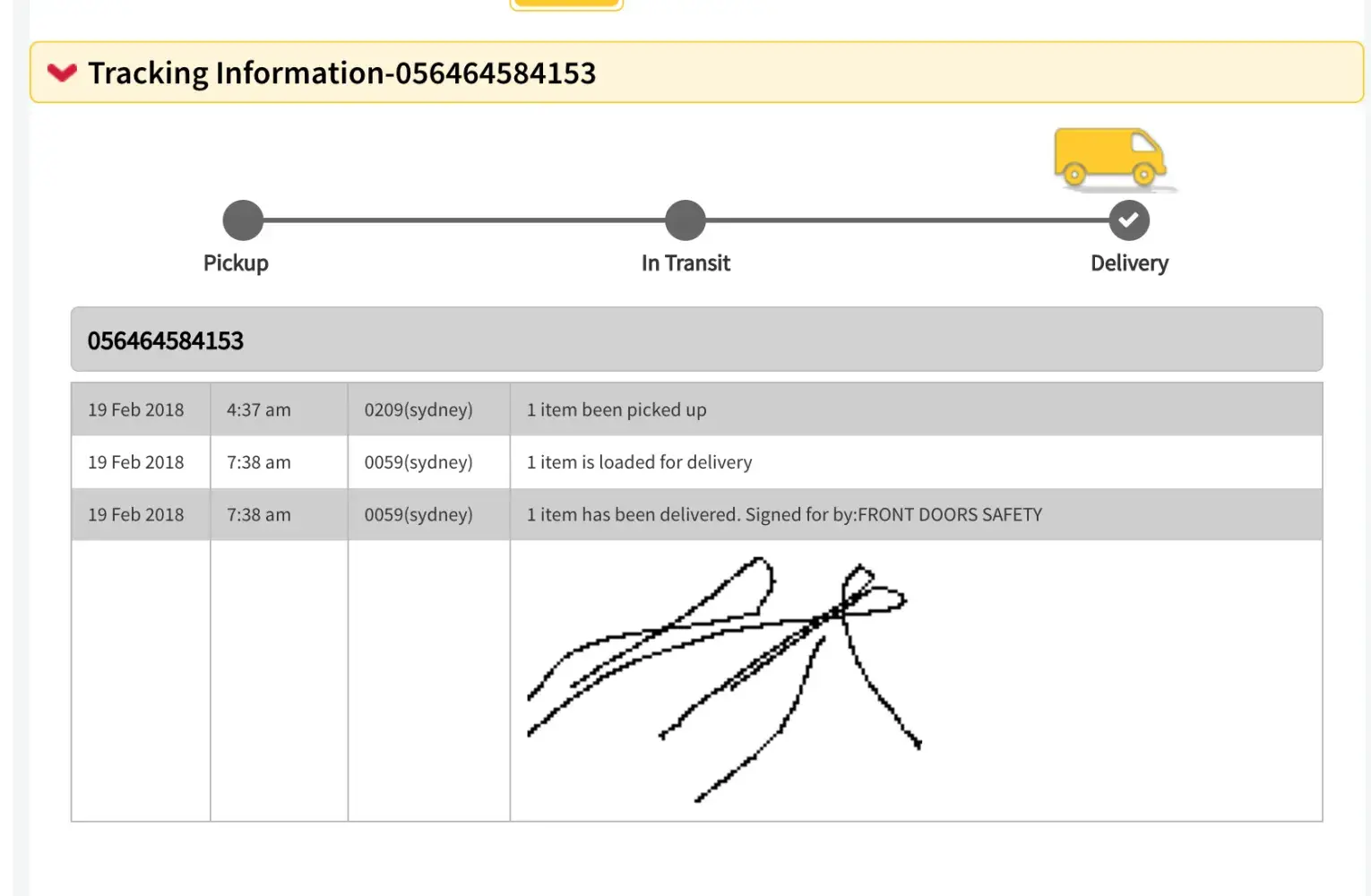 The courier did not remain long enough to receive a delivery signature. They did not even set foot on the property let alone try to see if anyone was home to receive the parcel. In short no one from my family signed for the parcel, although we did all hear it collide heavily with the front door. Despite this when I logged on to the Couriers Please website to track the parcel I discovered (to my surprise) that it had been signed for by someone (the signature does not belong to anyone living at this address). I also noted that it was signed for at 7.38am, the exact same time, according to the Couriers Please website, that the parcel was loaded for delivery (see screen grab attached). How could the parcel have been loaded for delivery and delivered in less than one minute? The timing suggests that it was signed for before arriving at the delivery address. Who signed for the parcel? It is hard not to wonder if the courier themselves signed for it, which would be a forgery and evidence that this particular courier never intended to deliver the parcel safely into the hands of its intended recipient preferring to throw it at the front door and skedaddle. This level of service is disgraceful and the forged signature is surely illegal.