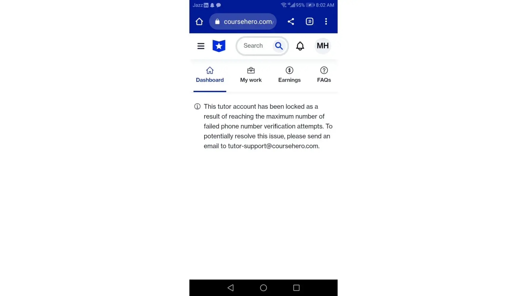 "This tutor account has been locked as a result of reaching the maximum number of failed phone number verification attempts. To potentially resolve this issue, please send an email to [protected]@coursehero.com."