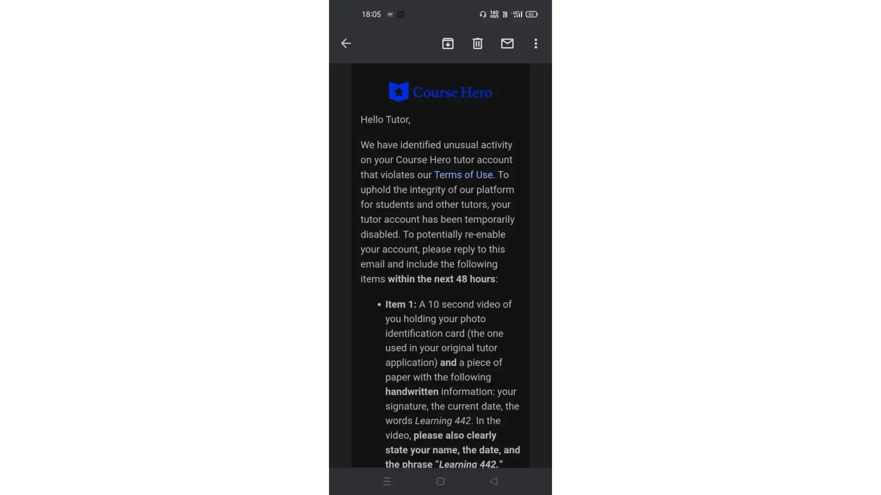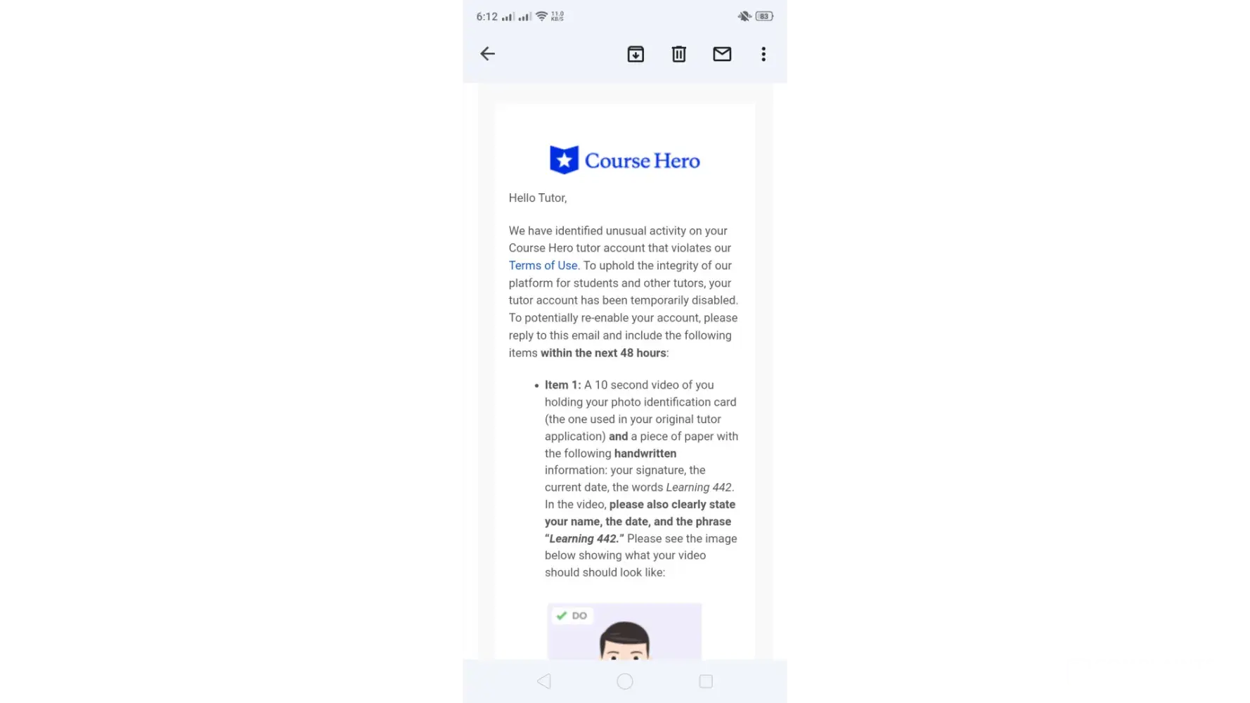 Yesterday night,i got an email from course hero saying that ,they temporary disabled my tutor account . And told me to send a 10 sec vidoe clip to them with some instructions for re enabling the account. And i did it .