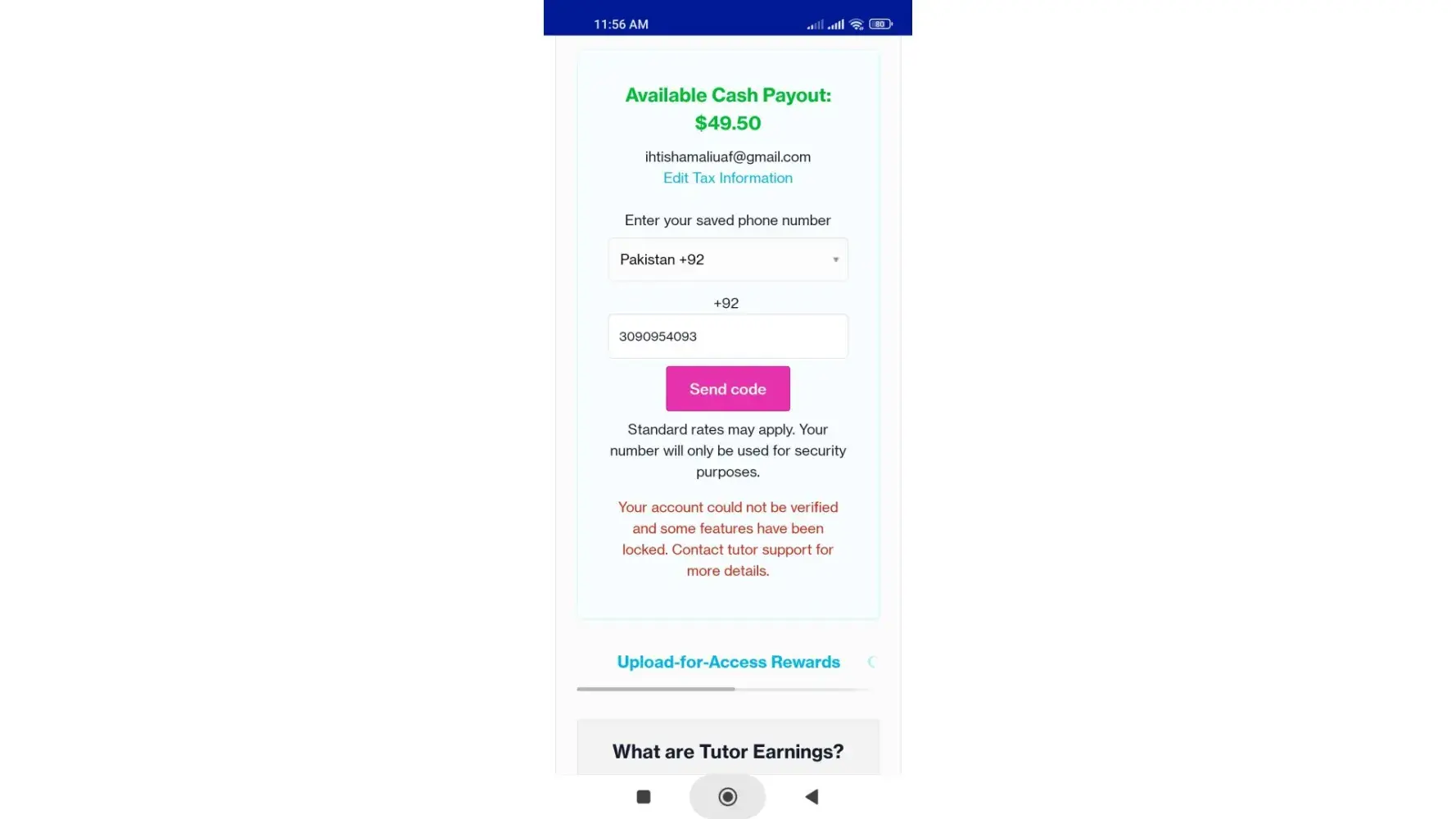 But after entering wrong number, I tried again using correct number, It showed that my number cannot be verified and contact tutor support.It was locked immediately, how's my earnings ðŸ˜