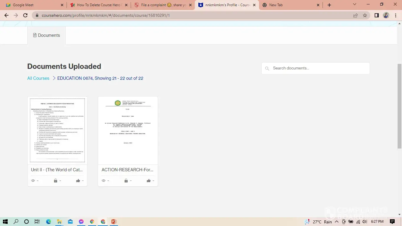 I posted notes and exams from my institution this april 2022 on coursehero, and the lecturer requested that I remove them immediately. All of the notes I received from my institution, for which I had to obtain permission from the owner because they were solely intended for university students. I unintentionally posted a few notes from my university into course hero, which I urgently need to remove before the university's senior management takes action. I requested that course hero be removed, but no action has yet been made. I definitely need to get rid of all of the docs from my account right away. Thank you