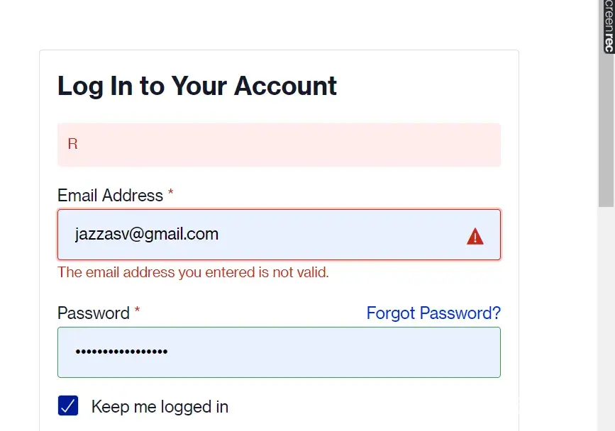 I am unable to log in to my account. Tried it multiple times but only ends up with the "R" with the red background and no further noti on why I can log in