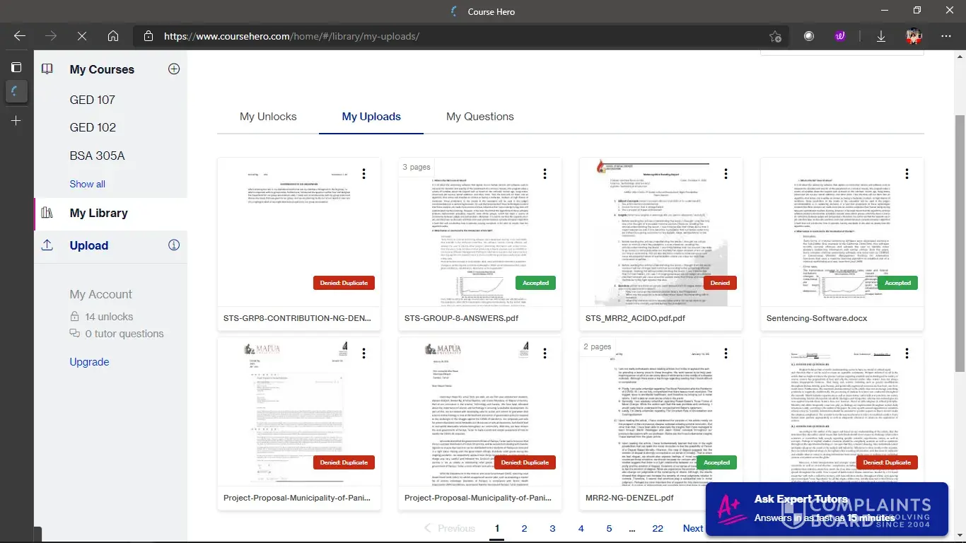 I am complaining about how to remove my files in course hero because some of my uploaded documents are not mine