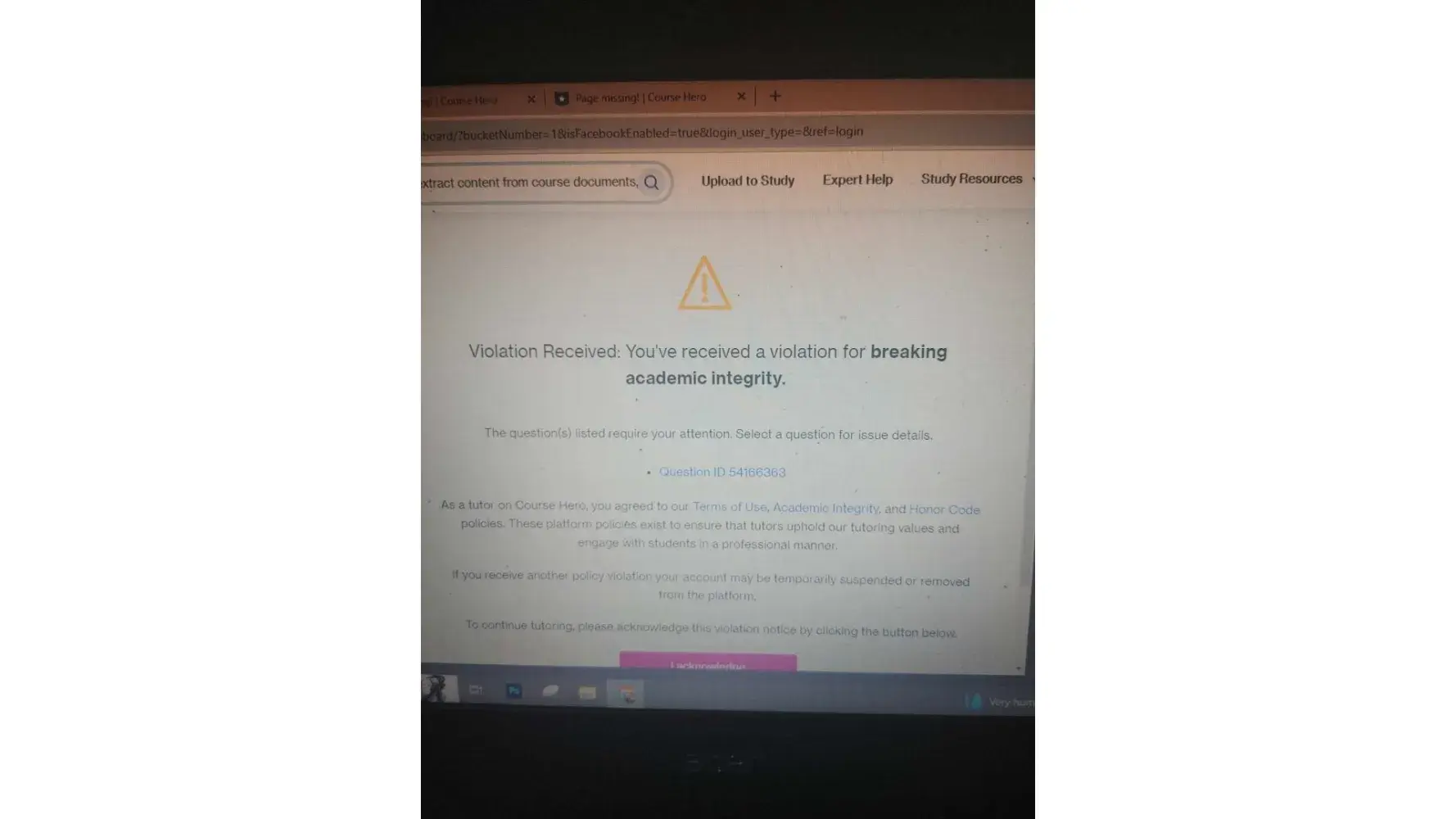 Course hero gave me probation period and blocked my tutor account.
