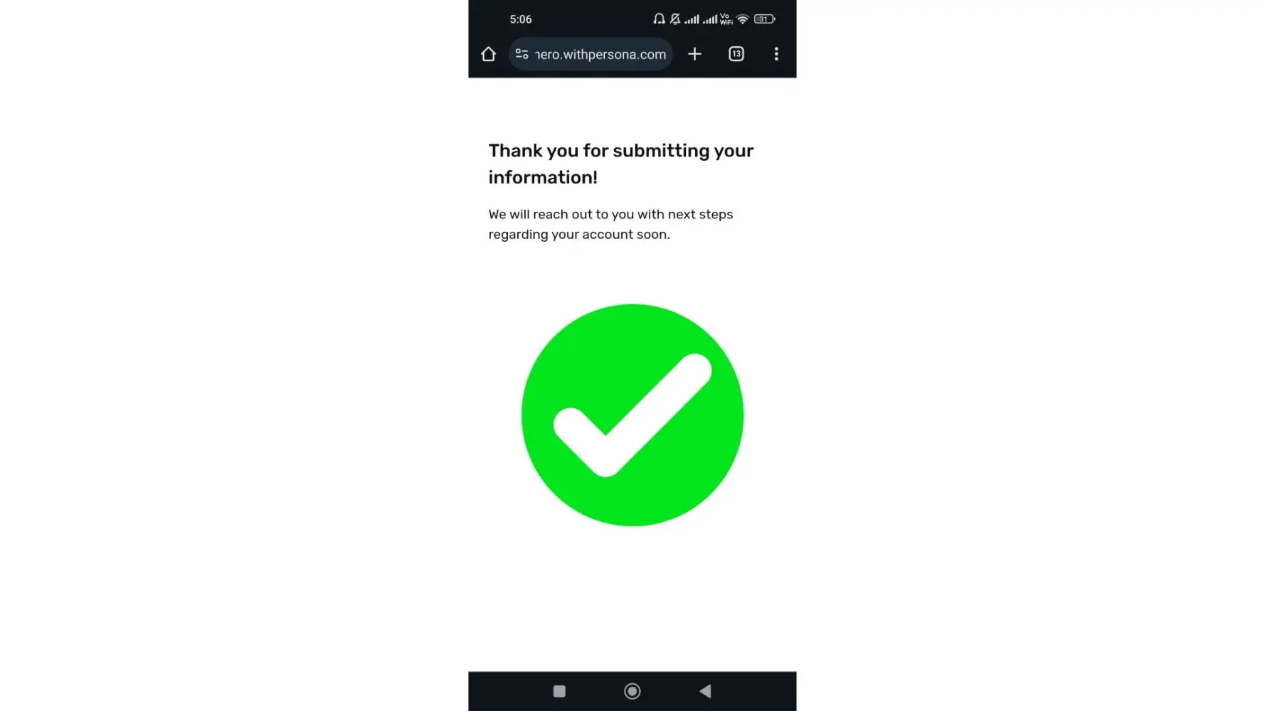 She provided me a Second persona link for verification on Nov 7th at 4:54 am IST and within 12 minutes I completed the verification process of OTP and National ID at 5:06 am IST . I have screenshot for the same .