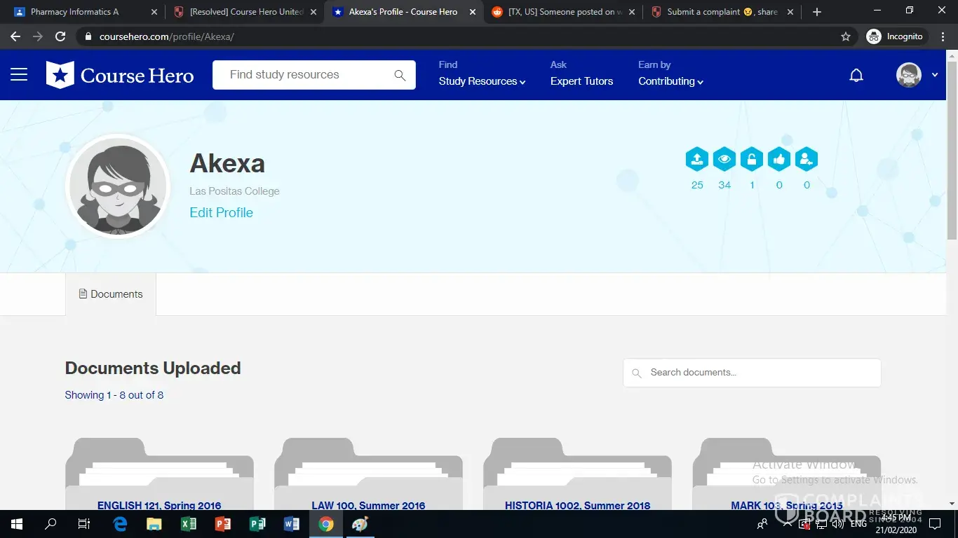 Report Cards, research papers, and academic requirements were illegally uploaded on Coursehero. Most likely, the user ConstableMonkey3665 must have uploaded some random files from a computer to get access to one particular file.