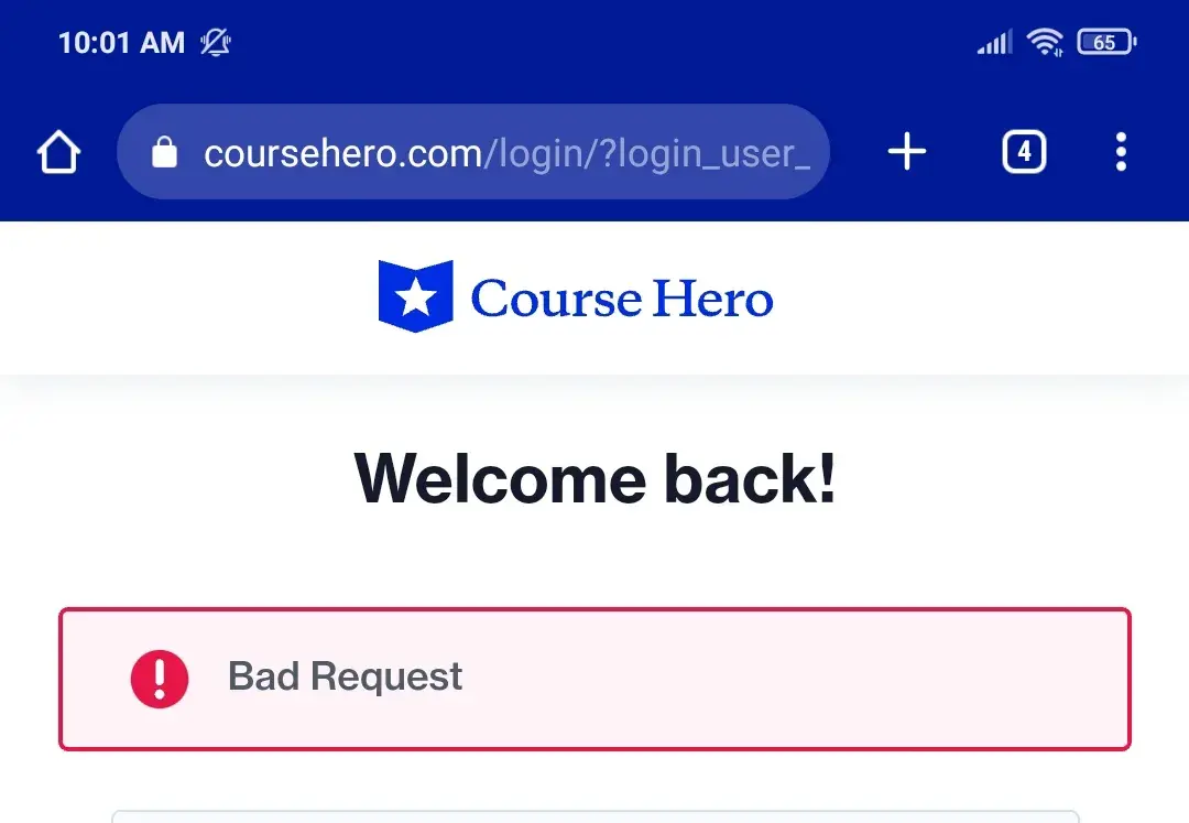 Course Hero Bad request while logging in