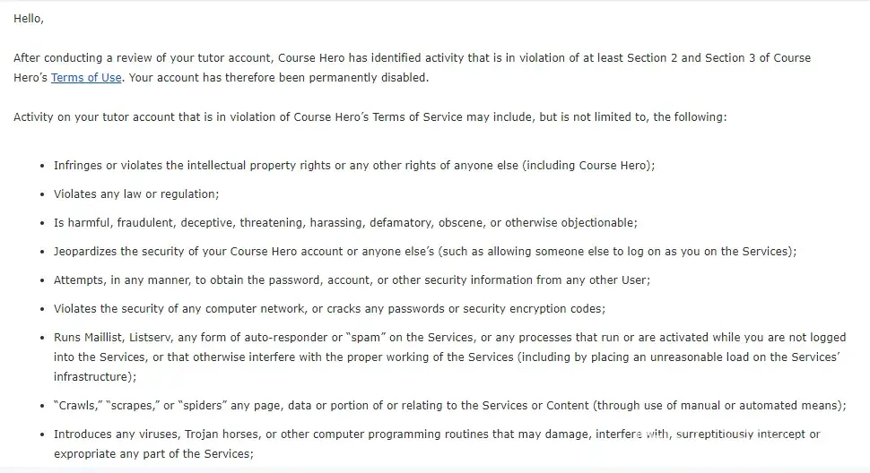 Course Hero They disabled my account without specific and valid reason.