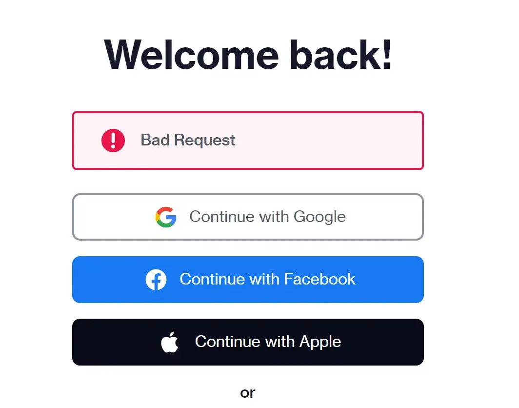Hey! I try to login on my account but all I got is bad request and error. Even I try to login to Google or Facebook all I got it bad request! What should I do? Please help!