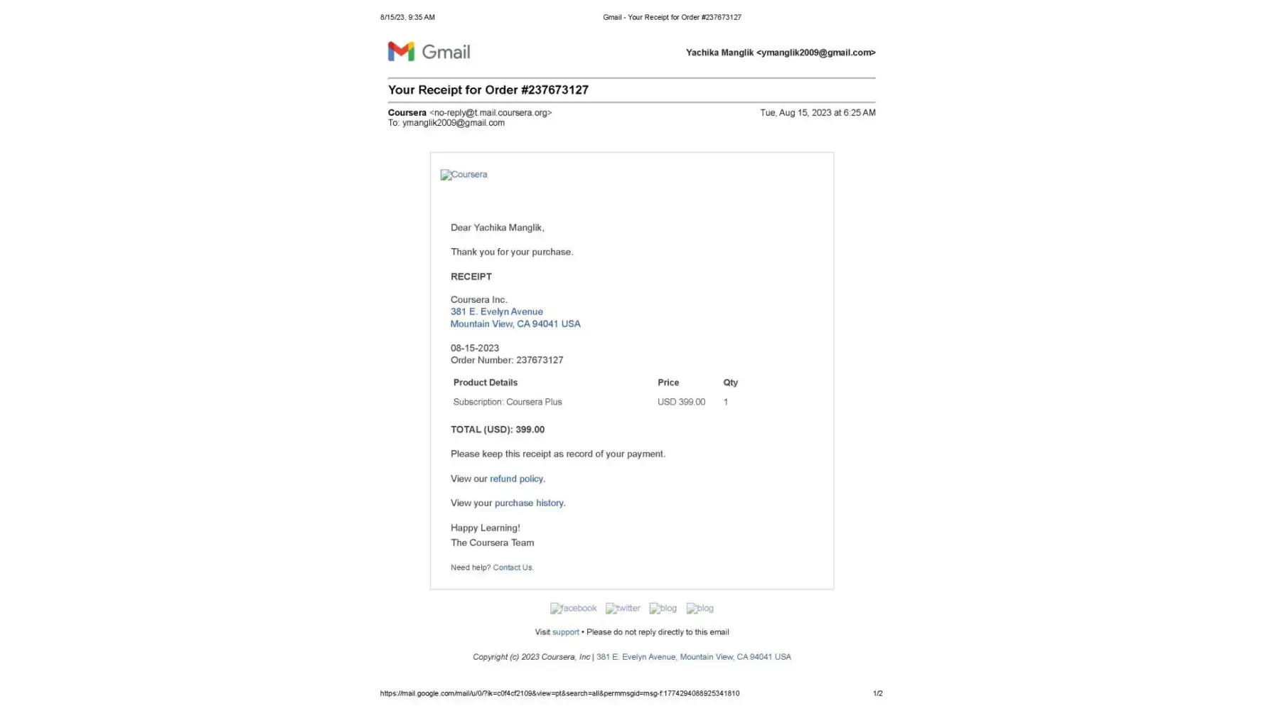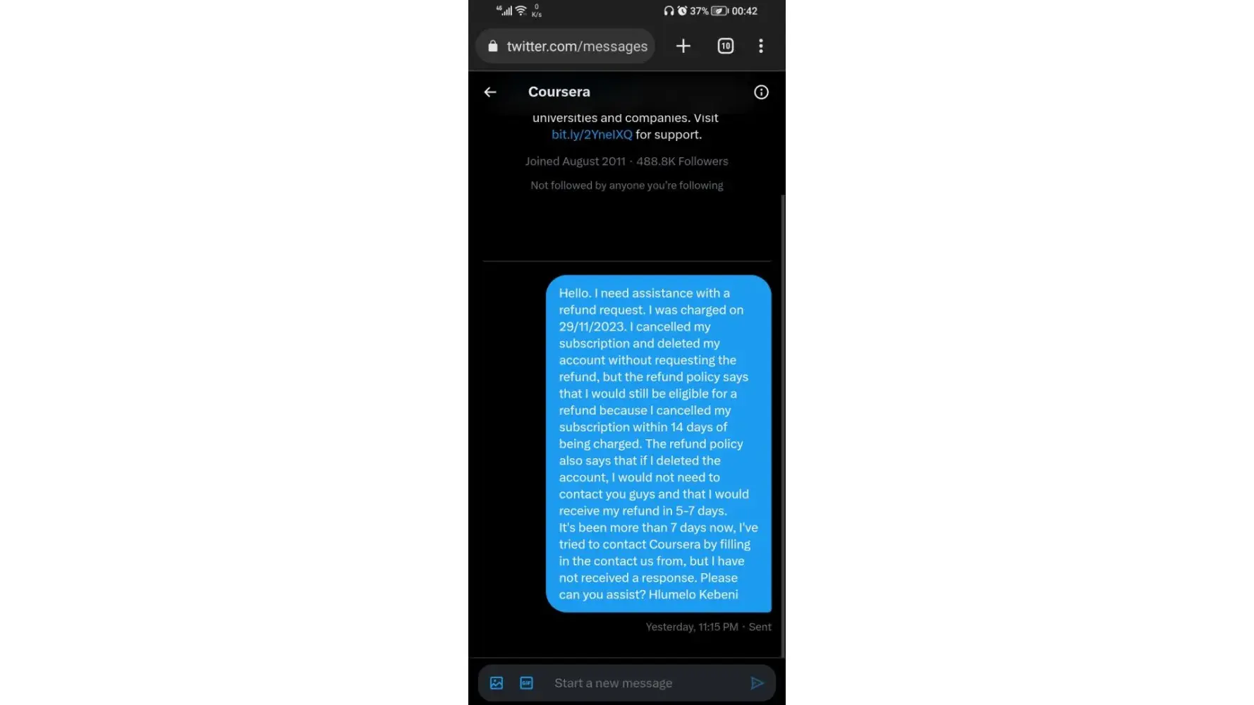 In conclusion, while Coursera has its merits, my experience with their customer service has left me with a sour taste in my mouth. I hope that they will take steps to improve their customer service and be more understanding towards their customers in the future.