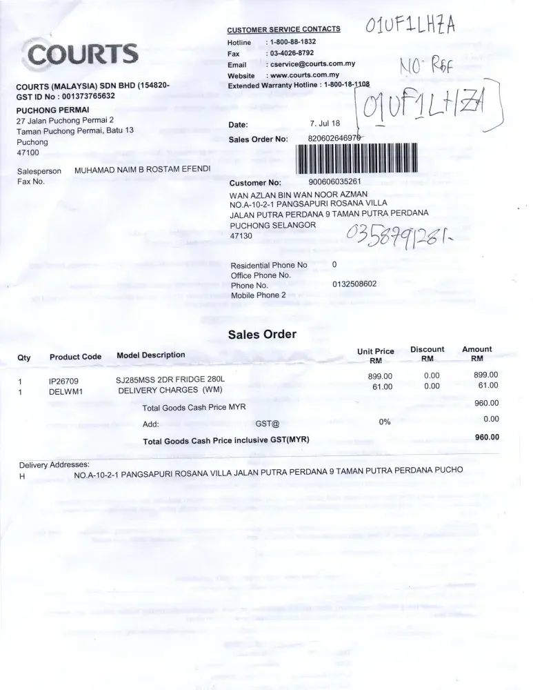 Courts Malaysia delivery in wrong address, not deliver at suppose address