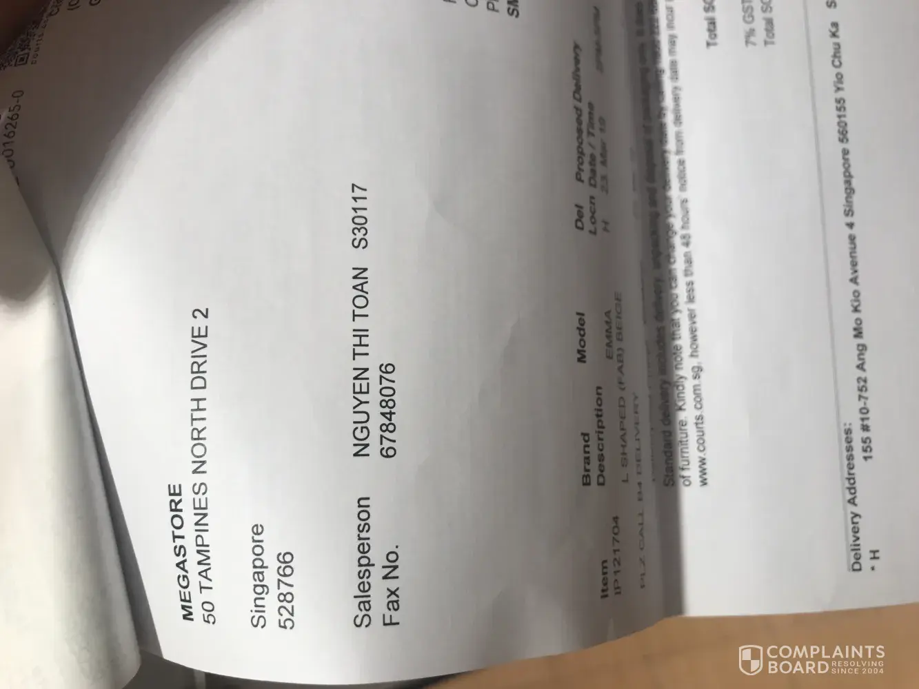 I was instructed to pay the remaining necessary ASAP, and so I did. I went down to Courts at Lot one the next day, 11th Nov, to pay more of the balance as instructed and was told by the same sales rep that very night that delivery date has been pushed to 17th Dec.