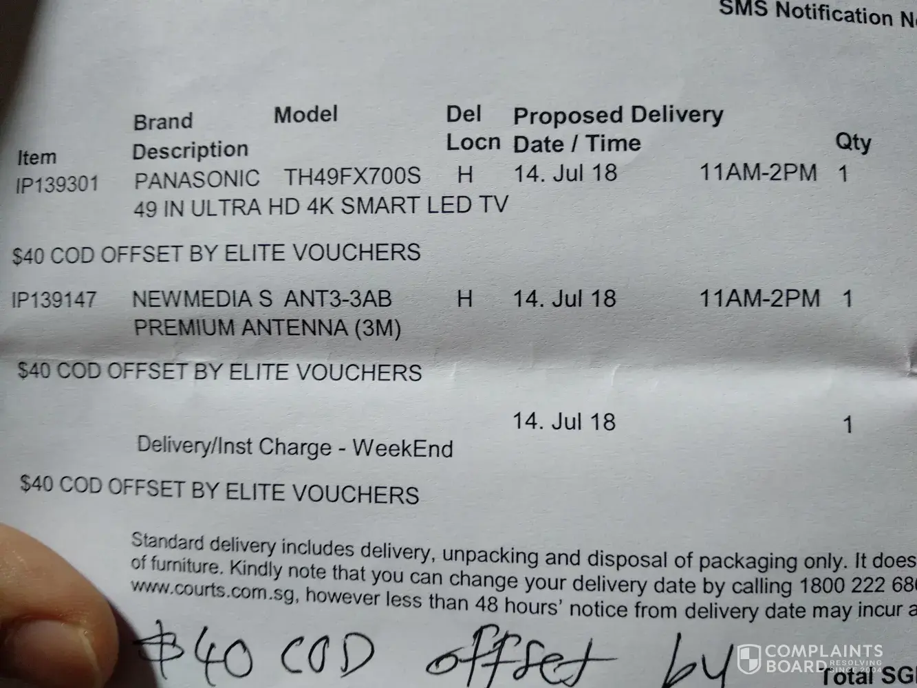 I made a purchase of TV, Washing Machines, Sound Bar and Fridge on 16 June 2018. Delivery of all goods should be on the 17 July 2018. However, I received a call on 16 July 2018 that the shipment for the TV is delayed and the delivery of TV need to be postponed to 26 July 2018 instead. What horrified me is that, on the actual day of the delivery (26 July 2018), I received call once again from Courts telling me that the shipment of TV is DELAYED. Such a disappointment.