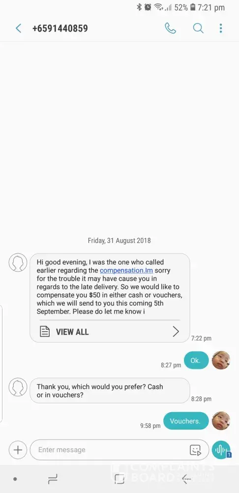 Finally after our conversation and I have waited for 30mins, The delivery arrived at 4:45pm.
