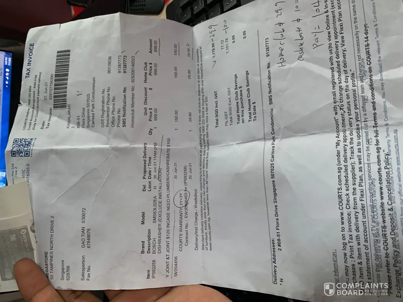 Hi Courts Team, I would like to complain for your system as well as your delivery team today 05-Aug-2021.