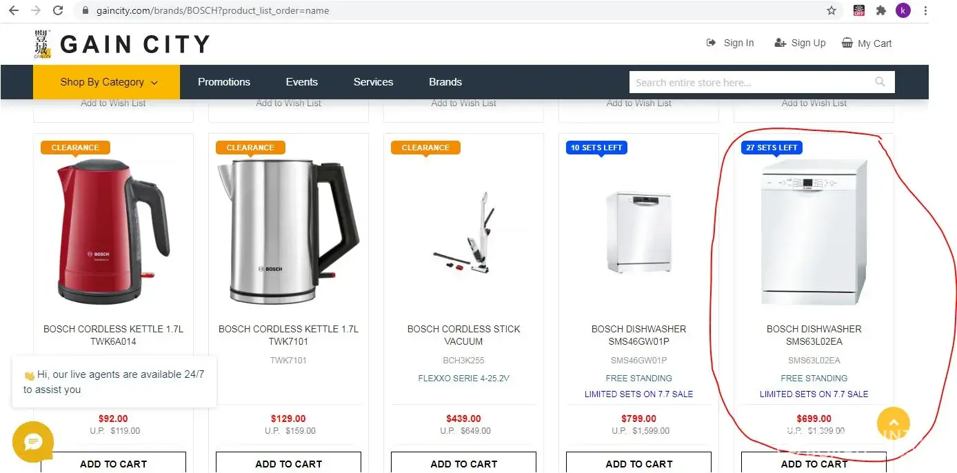 The item appeared available online so I was able to add it to my cart, and I was able to complete the purchase. I went to the physical Courts store in Funan, and the salespeople said that the model I ordered is already out of stock everywhere. Nobody from the online store is contacting me about this.