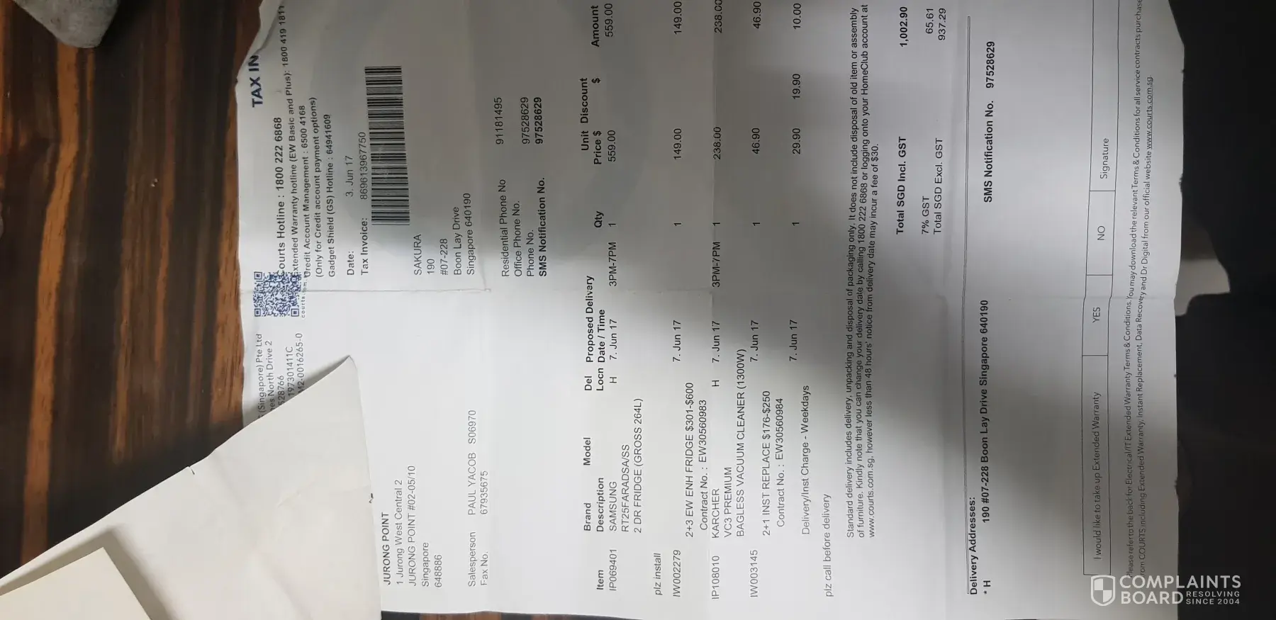 I hope you can look into this matter. You can get my contact details from the Tax invoice.