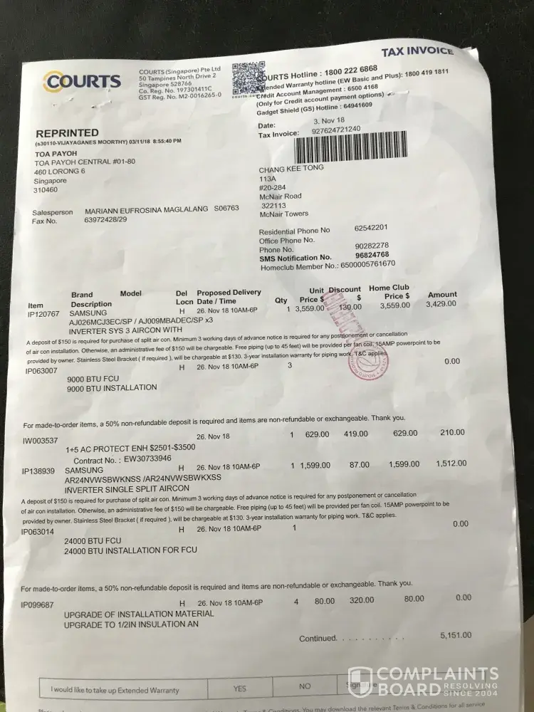 I have been buying many yrs fr Courts. Everytime there are problems. But i forgive them. THIS TIME, I WONT FORGIVE THEM.I WILL NEVER DO BUSINESS WITH THEM ANYMORE. NO WONDER COURTS IS SOLD TO A JAPANESE COMPANY.