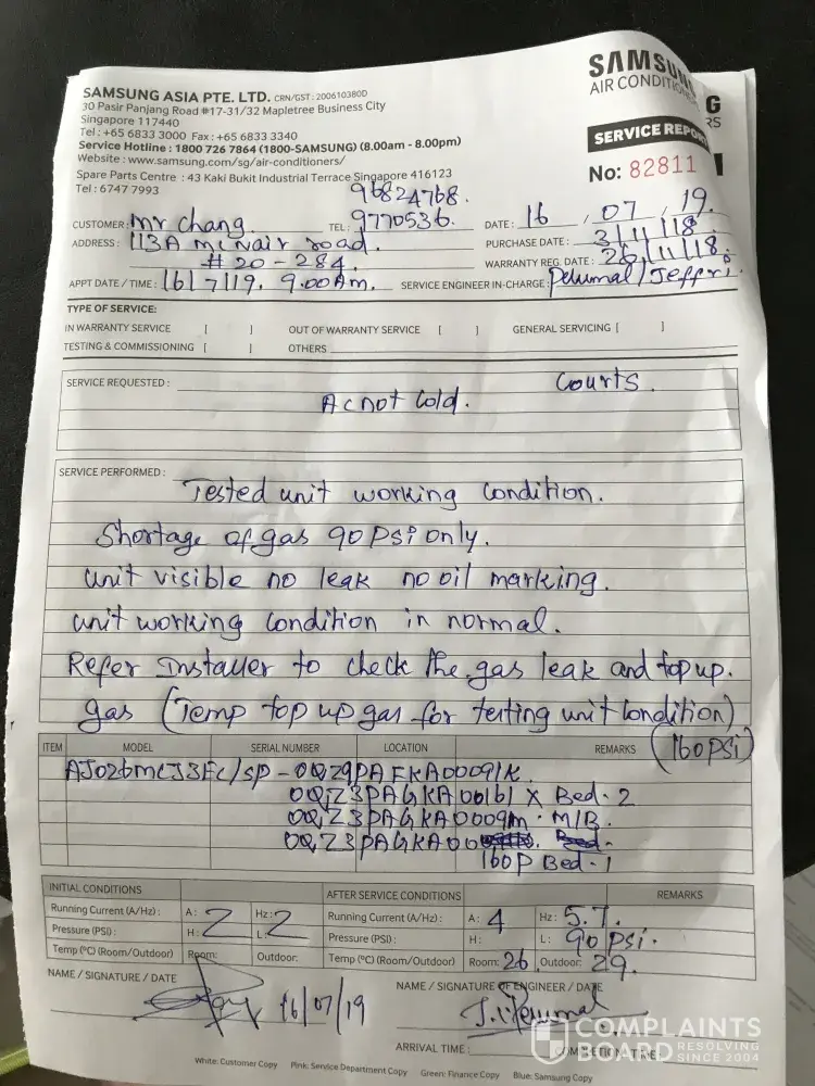 I called Courts Aircon Repair on 24 July 2019 to arrange an appointment. The staff said they will arrange on 26 July 2019 and will call back to confirm the time. No news heard from them and I had to call on 26 July 2019 again to confirm the timing. To my dismay, they wanted to arrange for 30 July 2019 whereas they had initially told me on 24 July 2019 that the appointment is on 26 July 2019! I had to express my disappointment and frustration then they manage to arrange the appointment on 27 July 2019 between 1 to 3pm. So their technician came on 27 July 2019, Sat at around 215pm. After a thorough check, the technician said that they have to replace the PSB board and will feedback to their backend team to check availability of the parts.
