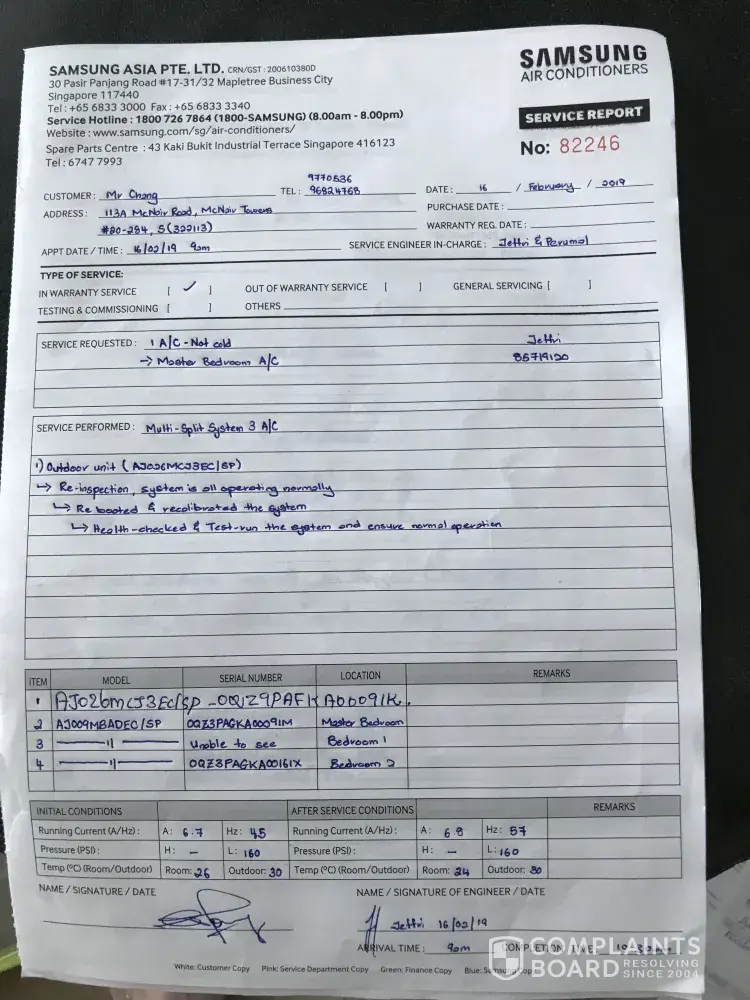 Samsung Service Report 16 Feb 19