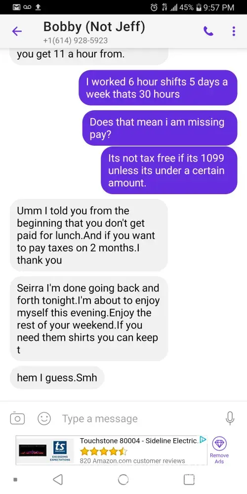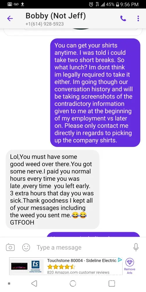 So I was given 2 different jobs and had them taken away with no explanation or notice after I had taken time to go look at the buildings. Then later on found out the pay wasnt originally what was promised. I was only supposed to be at the 1st location a month due to distance in commute and stayed an extra month then it was considered I quit when I fulfilled my end of the contract. Communication sucked and I was never brought more supplies. They had me training other employees. I also have messages from the franchise owner telling me hes "a boss baby" and he cant fire himself. Id be happy to provide screenshots of my pay through cash app and of the conversation.