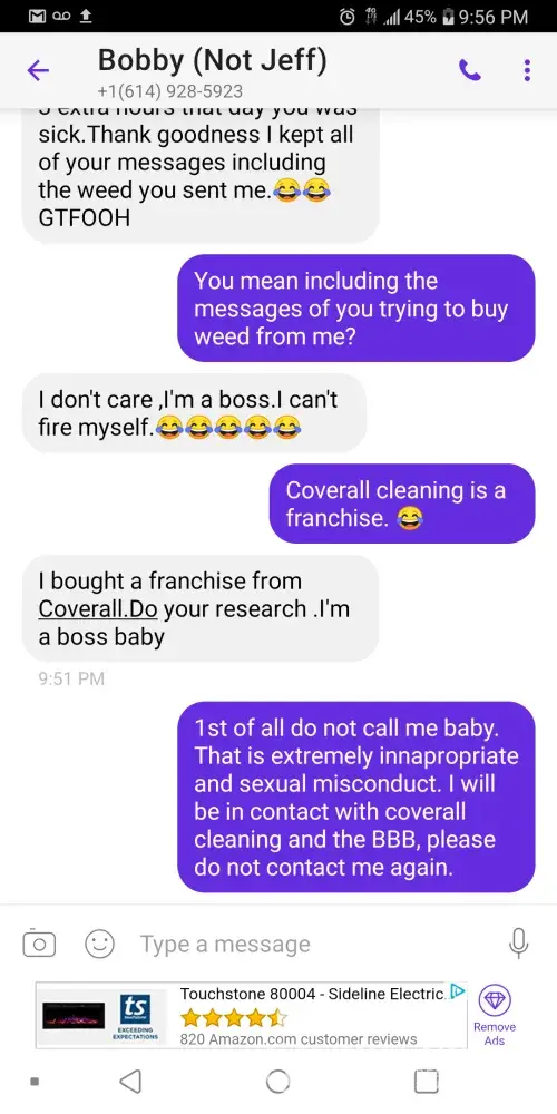 Yeah well that's [censored] if you think about. Coverall is almost giving you some low money jobs. I'm with Coverall how come i don't feel like a business owner. These People wanna control the whole show.