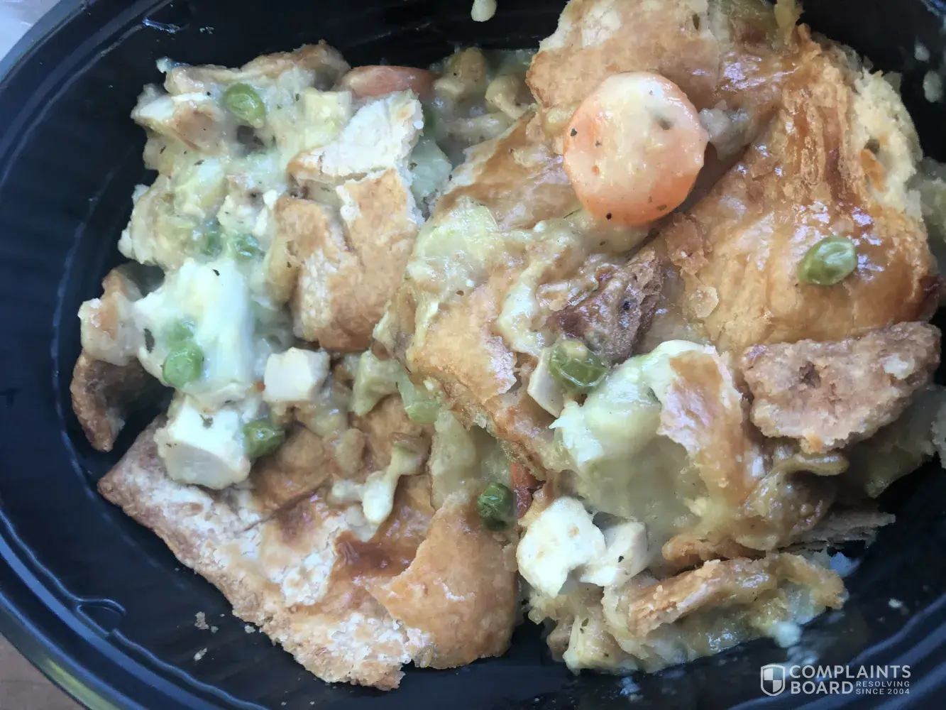Total disappointment. Ordered curbside. Chicken Pot Pie and Shepherd Pie. Both barely warm. Pictures say it all. Order was 10 minutes late. Service has been really poor at this location since pandemic.
