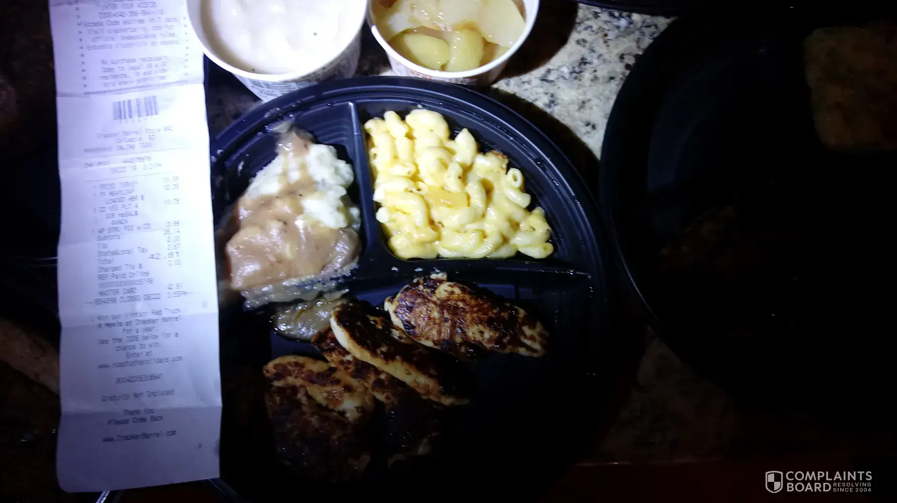 Firstly - I am a long-time fan of Craker Barrel! I also want you to know exactly why I am very dissappointed. Placed online order on Dec 22-2019 at 1513 hrs for pickup at 1600 at store #42- Columbia, S.C. Arrived at store at 1555 and was soon told (turkey dinner was not available, no phone call)! I said I would take grilled chicken instead. At 1620 hrs I was contemplating asking for refund and asked to see a manager and I spoke with a very busy young man that was unaware I was waiting on my food, he took my receipt and dissappeared into the kitchen. My food arrived at 1630 hrs by another employee who had no idea what was going on. Upon unpacking and checking our food order I was even more dissappointed at the inaccuracy to fill our order. I am listing the accuracy issues in the order of our receipt, photos attached below. Fried Turkey Dinner (not available). Meatloaf dinner (meatloaf charred and no mac and cheese pics attached). We ordered bisquits and got nothing. Vegetable plate (house salad with ranch on side, we got nothing).in pictures you will see my receipt and food photos at least what we got. Normally you guys do a great job and we have always been happy - tonight we are at the polar opposite of that.in total our check was $42.81, I just dont feel like this is somthing normal to your business and I wanted someone to know what happened.