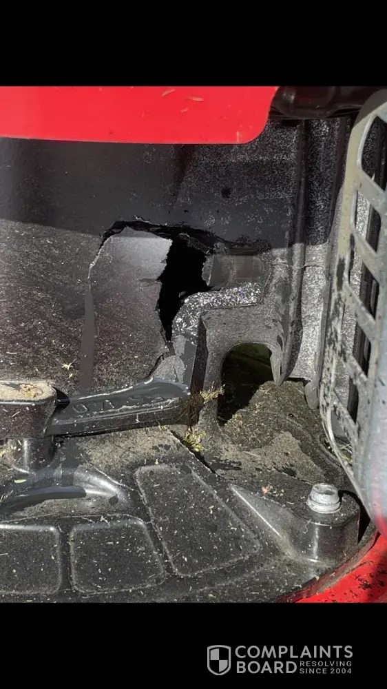 Desired outcome: I want the mower picked up, the failure determined and fixed and then returned at their expense.