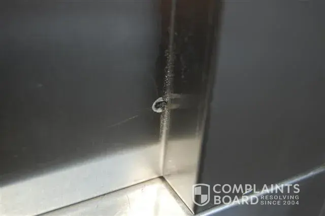 3. There is a noticeable spot weld showing on the right side towards the bottom.