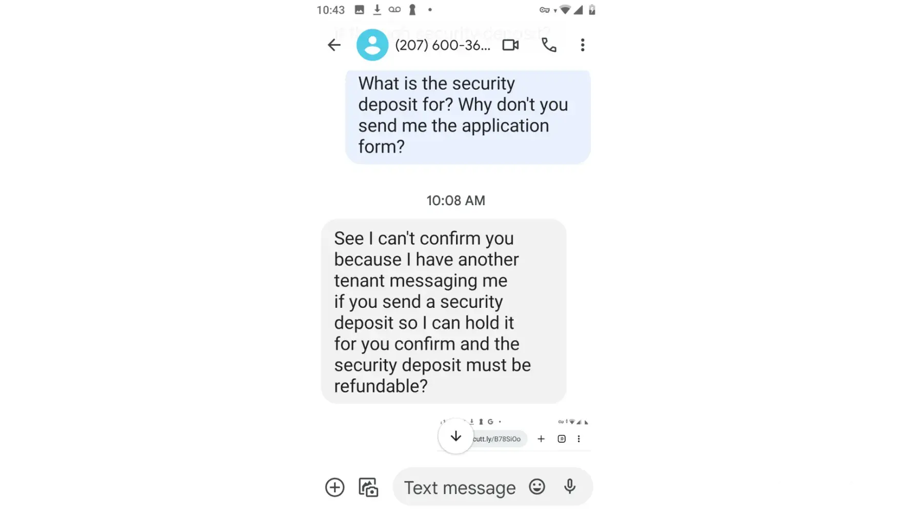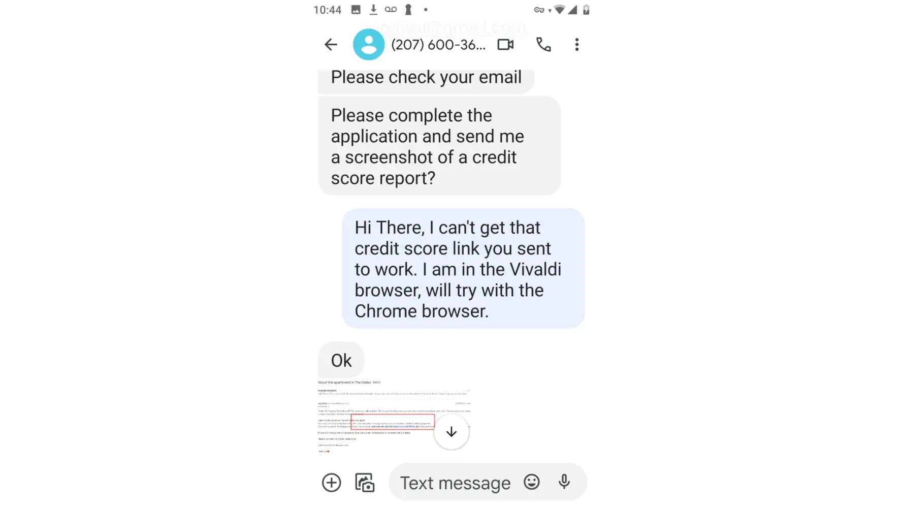 After sending the credit report, this person sent another link and said I had to fill out another credit report. At that point, I refused. Then, the peron asked for a deposit, which I also refused. I started to ask for the information of the party that was renting, and I got no answers. Finally, I informaed the person that I would be reporting them. And I stopped replying to their messages.
