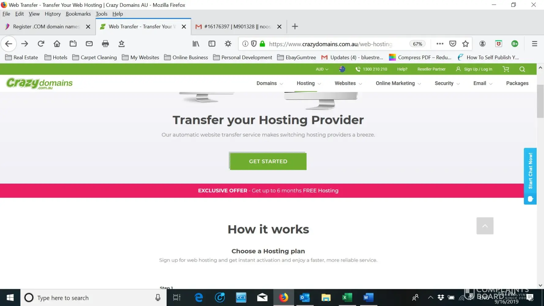My email hosting was coming up for renewal. I had experienced numerous problems throughout the year from Crazy Domains as to be frank their email service is NOT the business grade they like to tell unsuspecting prospects.
