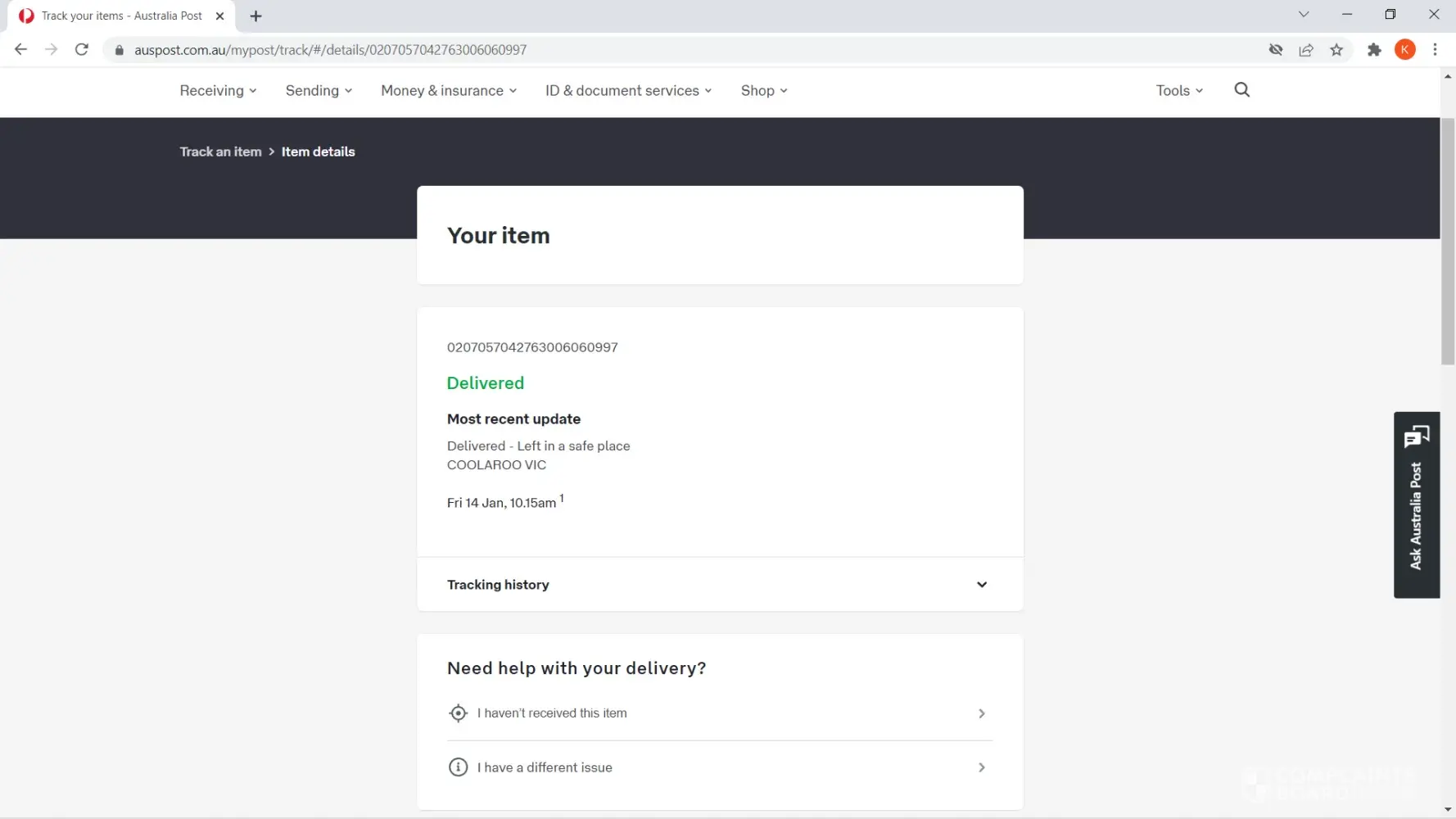 I sent it via Express post with a tracking number - the tracking number shows that it got there 14th Jan. So now they have both the payment for the watch, and the watch returned to them and I never got a refund, nor an update about what is happening with the whole process. It's March.