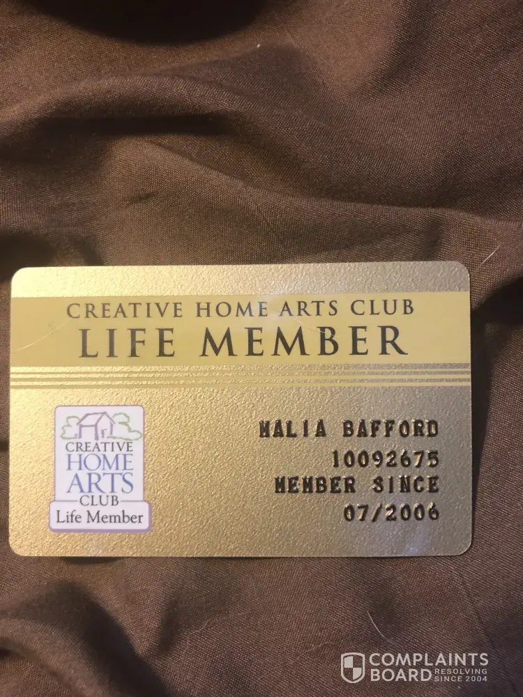I paid $300 for a life time membership and I never heard another thing from them. I have my card that states I'm a lifetime memory since 08/2005. What happened? I'm an avid crafter and that was why I joined Creative Home Arts club, but I am really disappointed with what happened. I don't know what to expect but something needs to be done, to correct this.