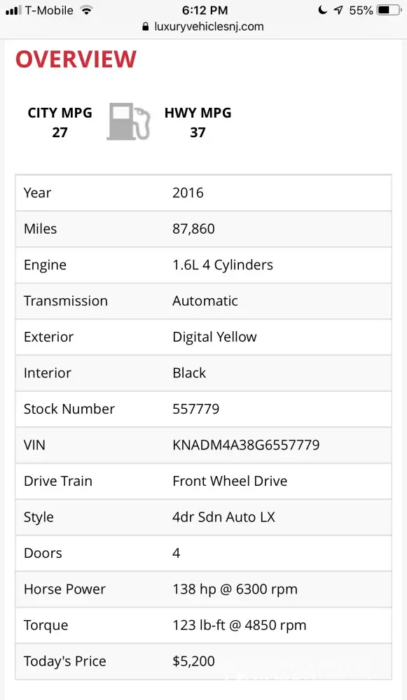 The Kia Rio was advertised for $5200. I was advised by the dealership that the total amount with taxes will take me to about $6000. In which I wanted to pay in cash . But I was advised by the dealership that if I financed the car it will help to build my credit scores. I then asked the dealer would this affect my payments and he stated, " No, as long as you pay before the 6 months period." He didn't give any paper work to me on that day so I went back the next day to get paperwork. This is when I noticed that the figures was not right. It had increased from the original amount. I then asked for my refund he said, "you have to get it from the bank" This is why I am filing this complaint. Below is a picture of the car and the original price. Account number: [protected]